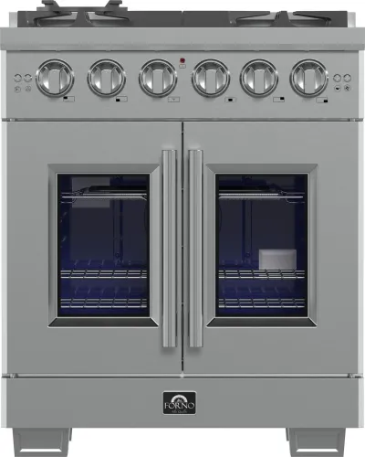 Forno Capriasca 30-Inch Freestanding French Door Gas Range, 4 Burners, Convection Oven, Energy Efficient