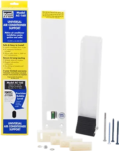 AC Safe 160 lb. Window AC Support Bracket supports room air conditioners up to 160 pounds.