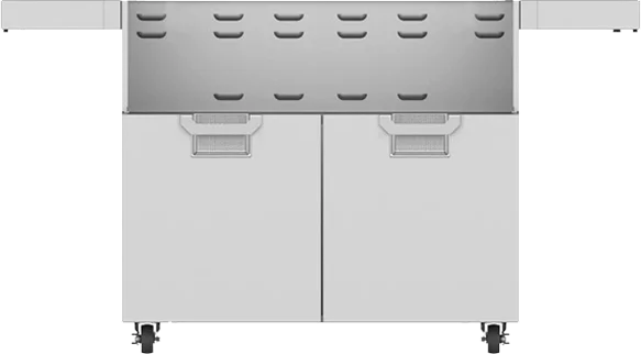 Fold-down side shelves offer extra stainless steel surface area for food prep, then fold down to save space.