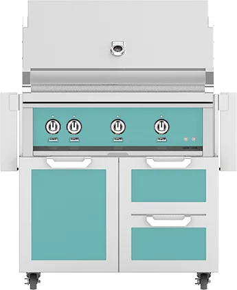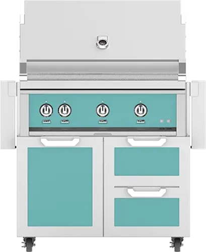 Hestan 36" Hestan Outdoor Freestanding Grill on Cart with Door/Drawer Combo, Bora Bora in Blue