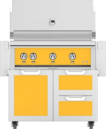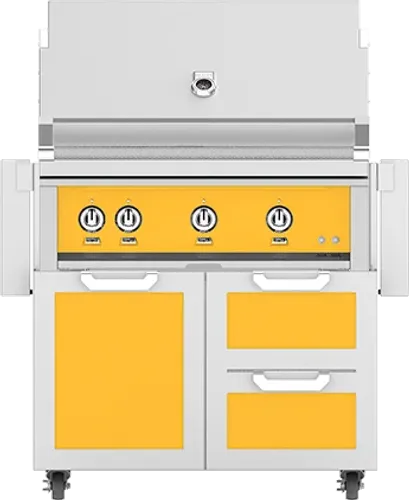 Hestan 36" Hestan Outdoor Freestanding Grill on Cart with Door/Drawer Combo, Sol in Yellow