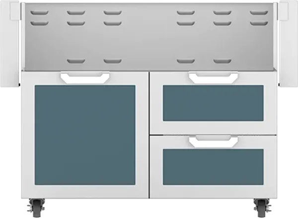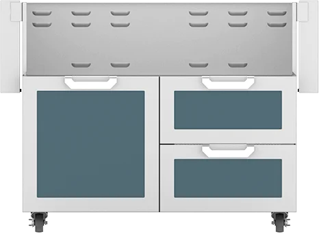 Hestan 42" Hestan Outdoor Tower Cart with Door/Drawer Combo - GCR Series, Pacific Fog in White On Blue