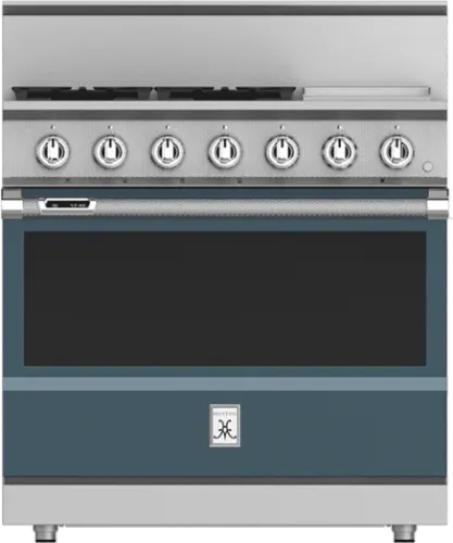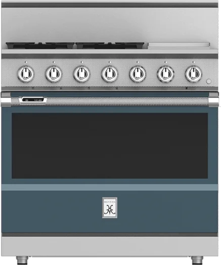 Hestan 36" Freestanding Dual Fuel Range, 5.8 cu. ft. Capacity in White On Blue