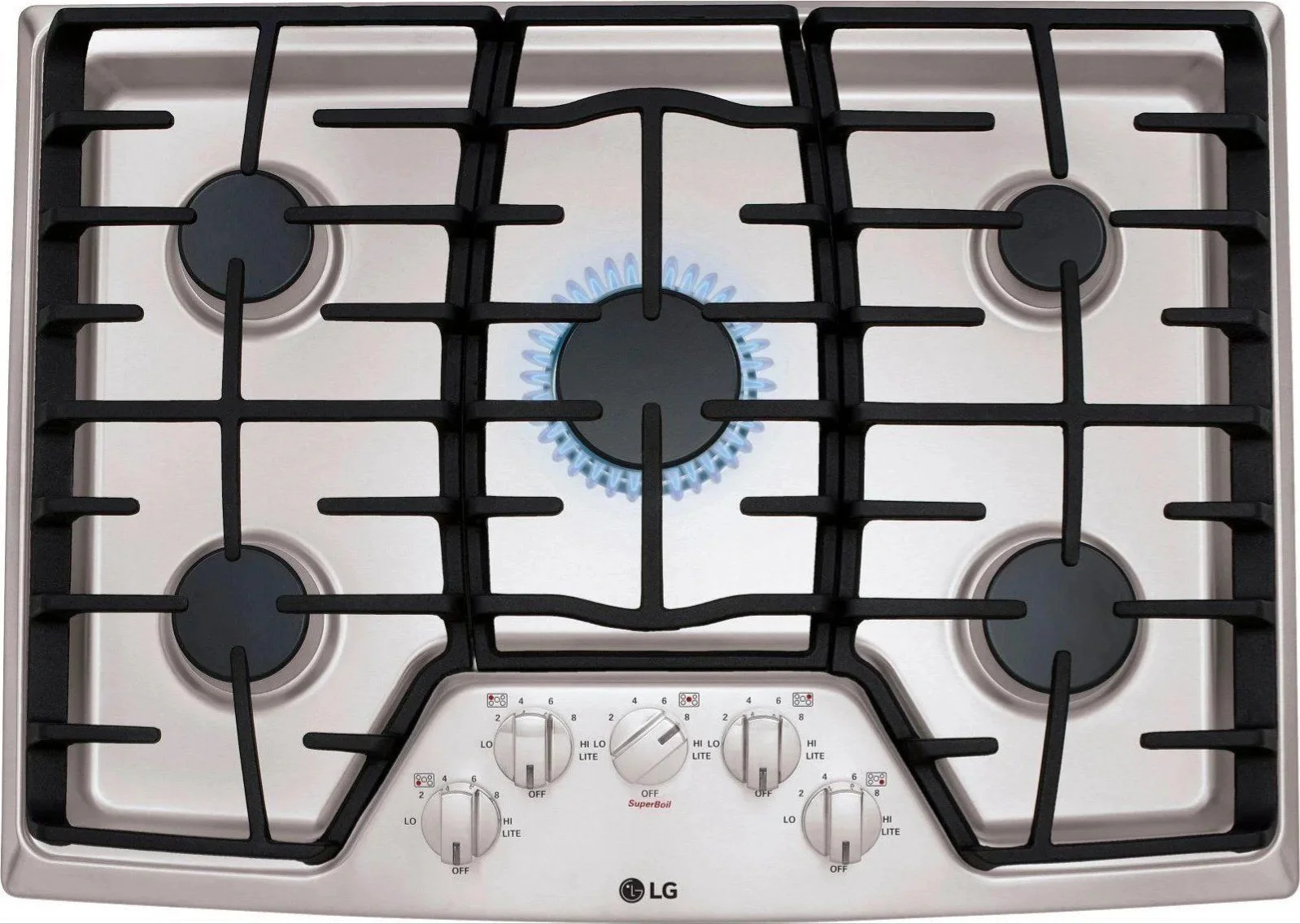 Continuous, heavy duty cast-iron grates keeps cookware stable for even heating.