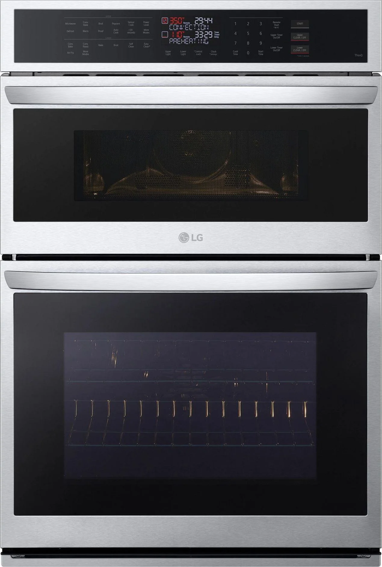 The convection microwave and and lower oven circulate hot air for more even cooking and browned, crispy textures