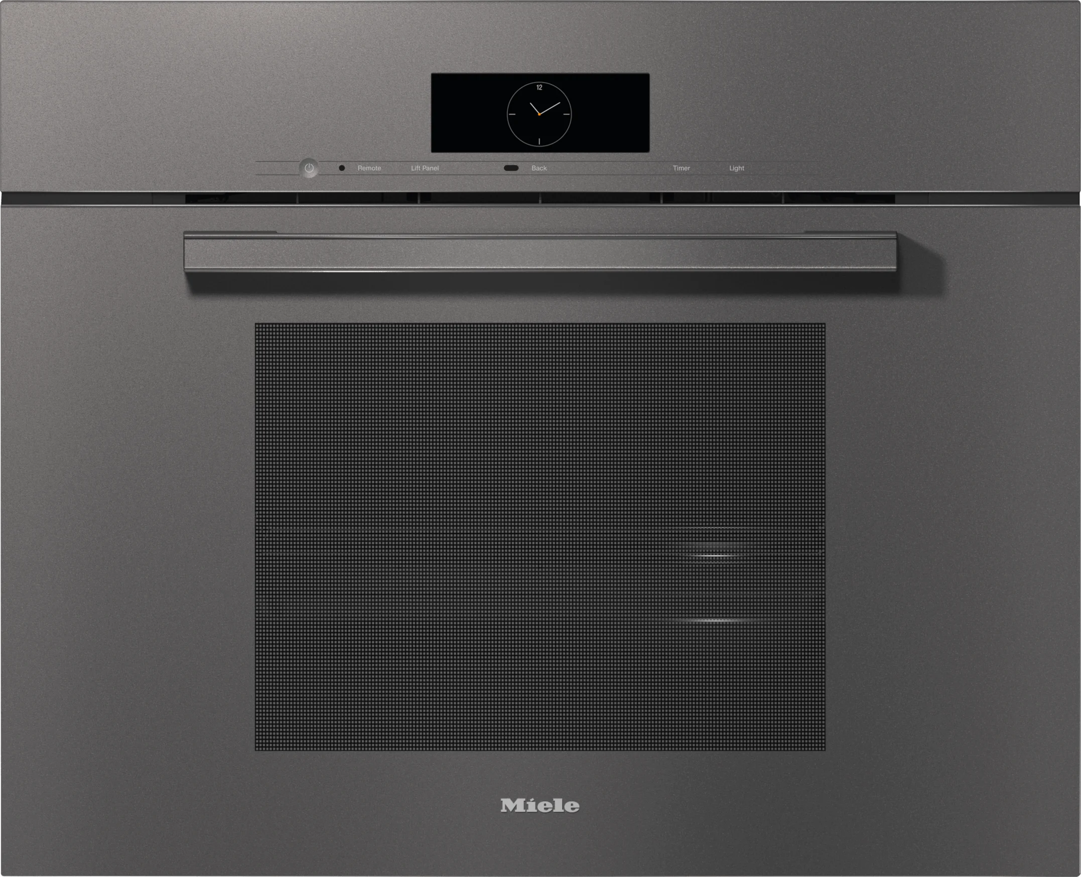 Stainless steel oven compartment with linen-weave pattern and PerfectClean finish