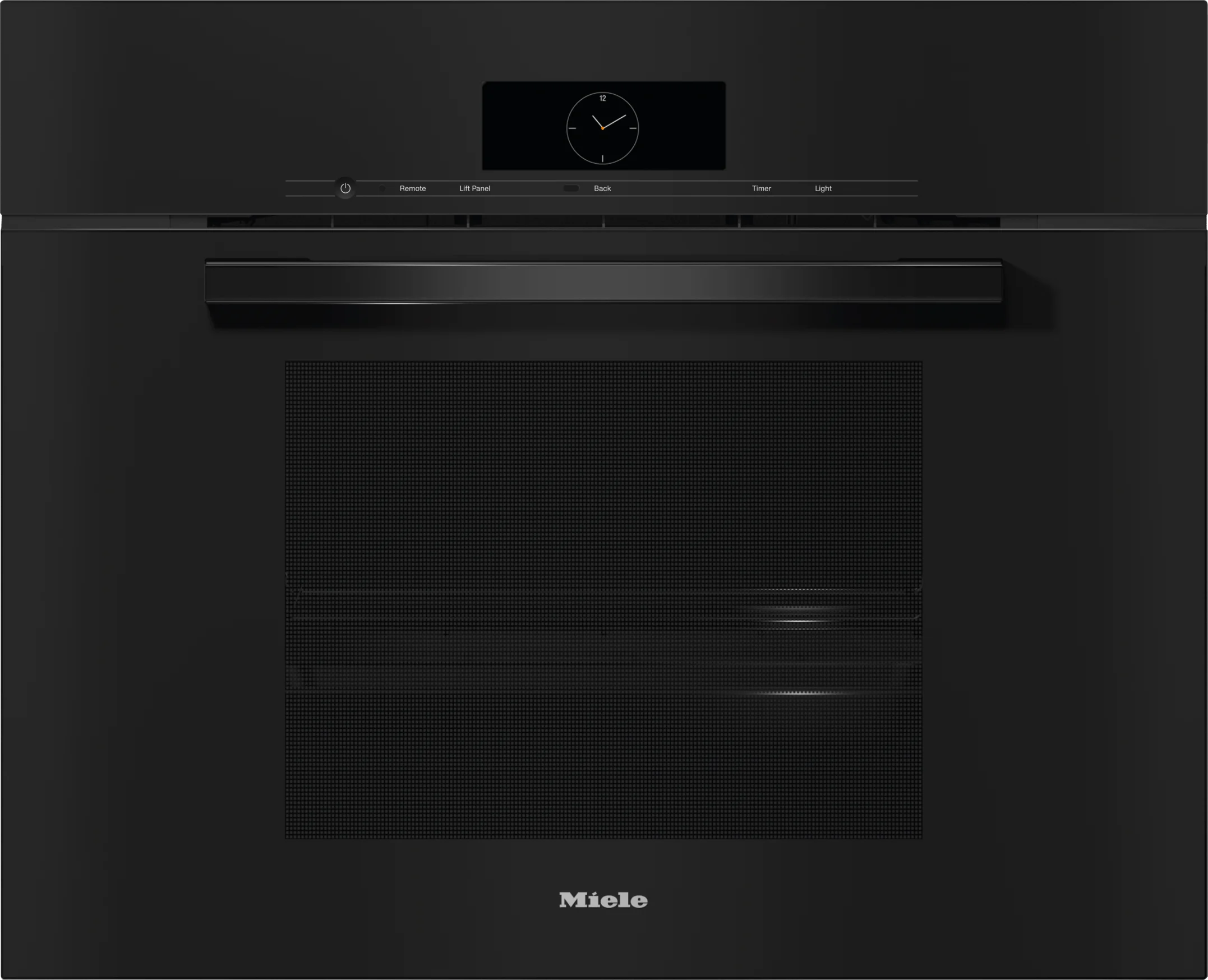 Stainless steel oven compartment with linen-weave pattern and PerfectClean finish