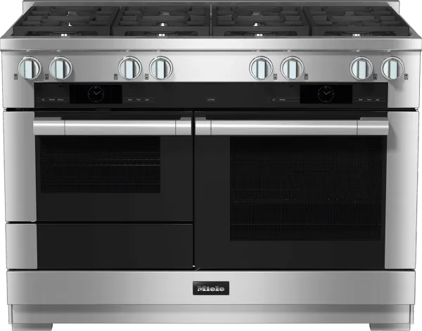 Miele's 48" Range includes M Touch Speed Oven, M Touch Convection Oven and Push-to-Open Warming Drawer.