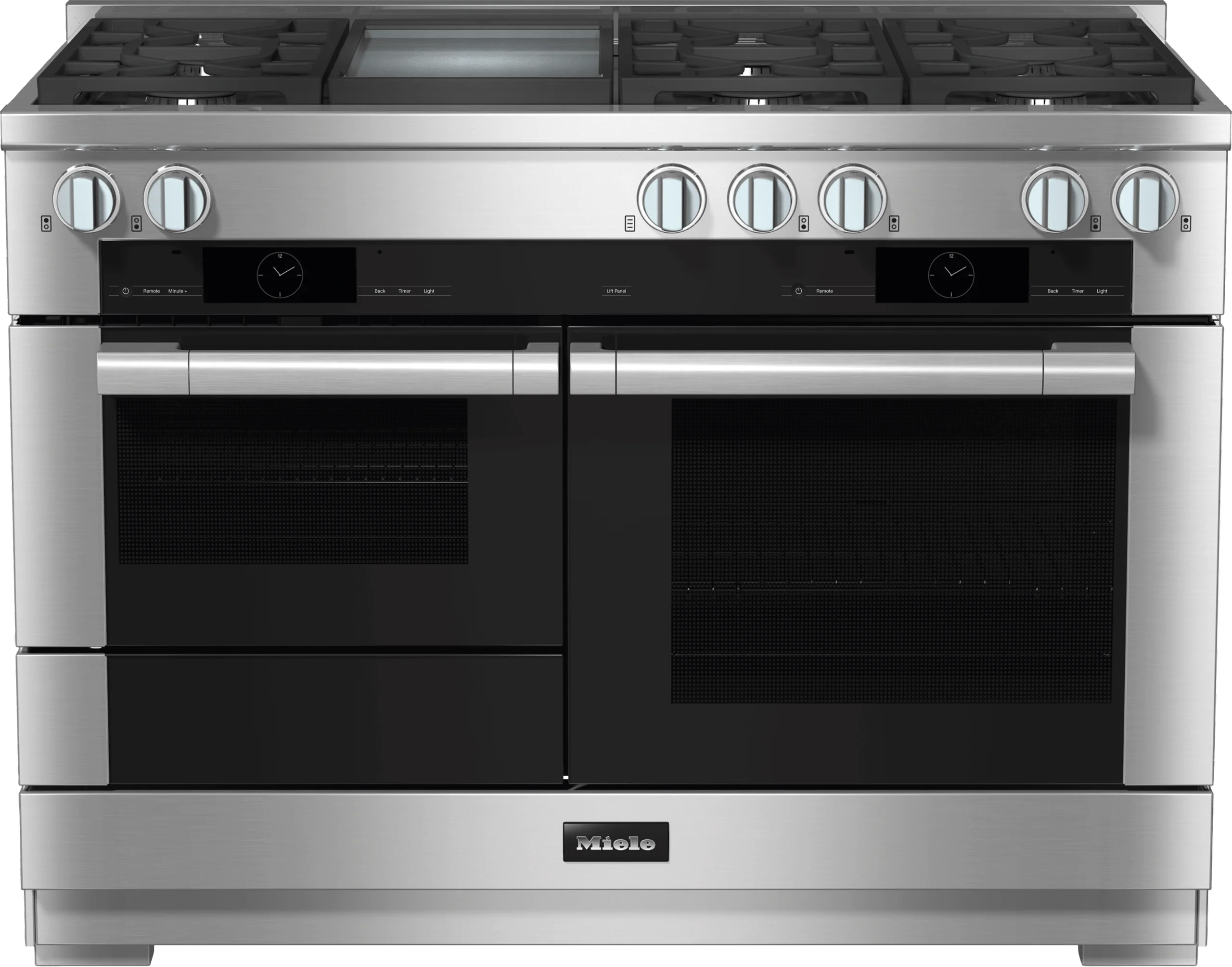 Miele's 48" Range includes M Touch Speed Oven, M Touch Convection Oven and Push-to-Open Warming Drawer.