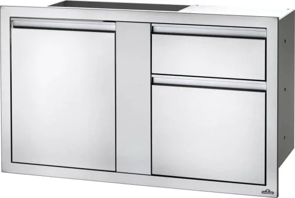 Creating your own custom grill island has never been easier with Napoleon's Built-In Components. Every great outdoor kitchen needs storage; this 42" x 24" built-in component has everything you need for storage. Featuring two generous drawers and a single large door for storage. The stainless steel construction, soft closing hardware, seamless trim, and anodized aluminum handles provide durability and endless installation possibilities.