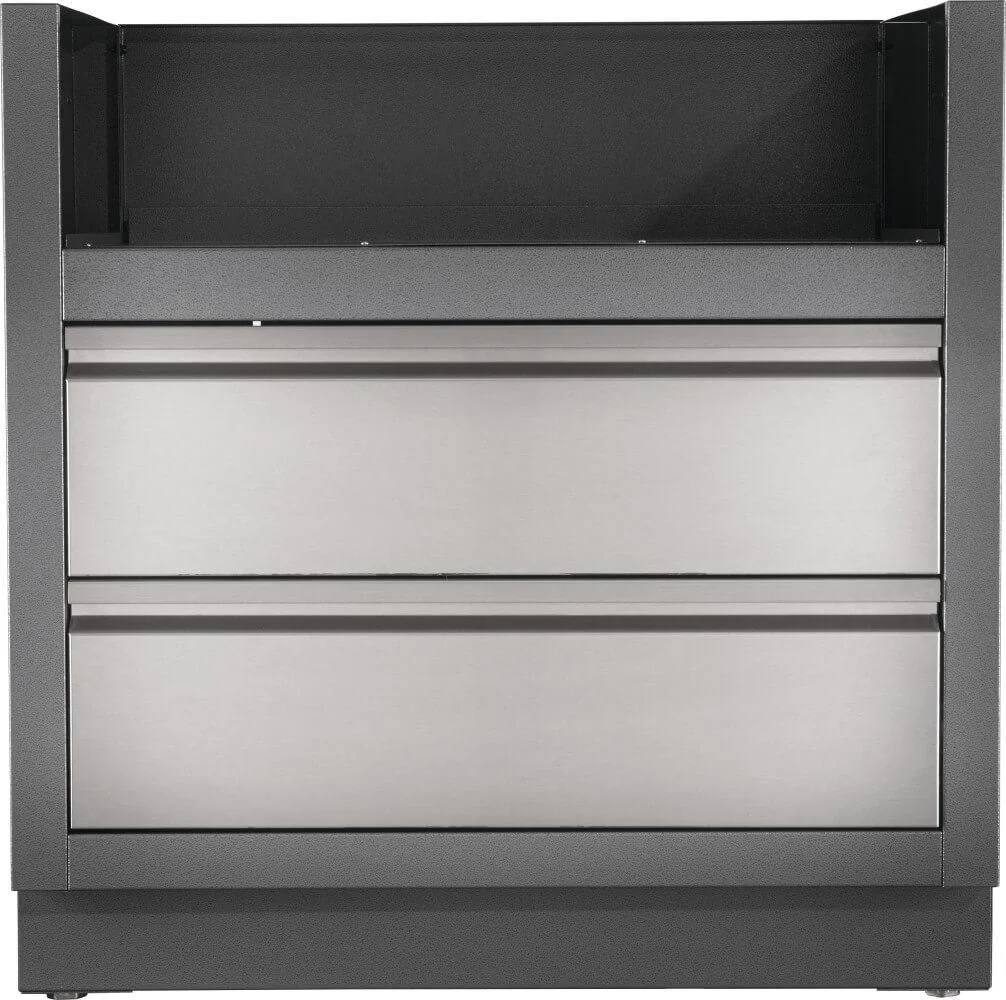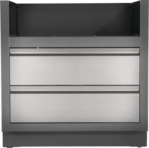 Specially made for the Built-In PRO 500 and P500* Gas Grill Heads, this carbon colored, powder coated, galvanneal cabinetry features increased durability from the two-coat pebbling finishing system. Two stainless steel drawers are mounted on smooth gliding tracks for under grill storage. Installation is a breeze with knockouts for gas and electrical. Levelling feet ensure a balanced surface, even if your patio isn't perfectly level. Partner this cabinet with the PRO 500 or P500* Built-In Gas Grill Head and the perfect OASIS cabinets for a custom outdoor grilling OASIS. This under grill cabinet is required for the Built-In PRO 500 or P500* Gas Grill Head. *Built-in P500 Gas Grill Heads are available in select regions only. Countertop not included.