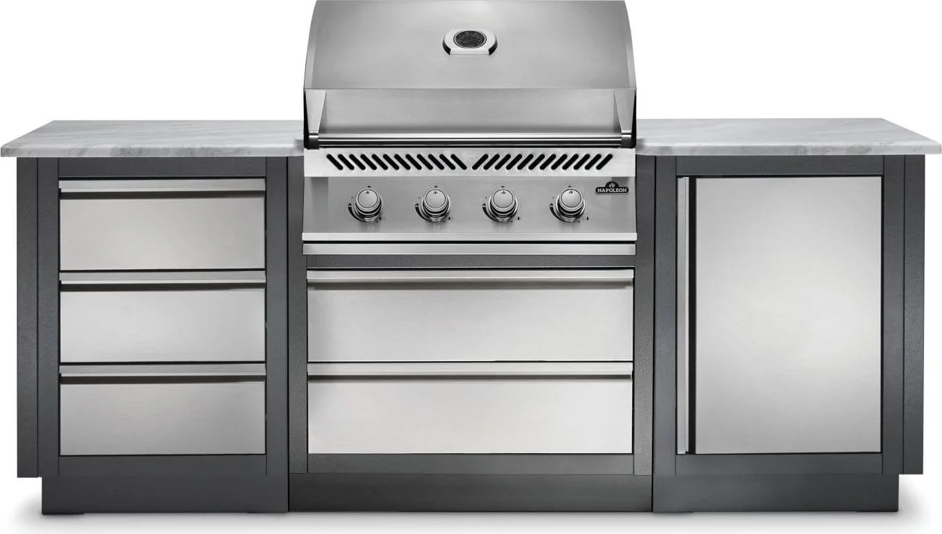 The space conscious OASIS 100 Modular Island Kit is perfect for any outdoor living space, providing the perfect amount of storage and workspace along with the full-sized, 500 Series 32-inch gas grill head. Each cabinet is built for durability, featuring stainless steel and carbon colored, powder coated, galvanneal. Fully customize this workspace by selecting your own countertop in the material and finish that matches your style. The hard work is already done and all necessary specs are provided. OASIS Modular Island Kits are easy to install. There are knockouts for electrical, gas, and water, as well as easy-to-level feet. Create the perfect outdoor kitchen experience with loads of convenient storage and a durable finish that will handle anything the elements can throw at it.