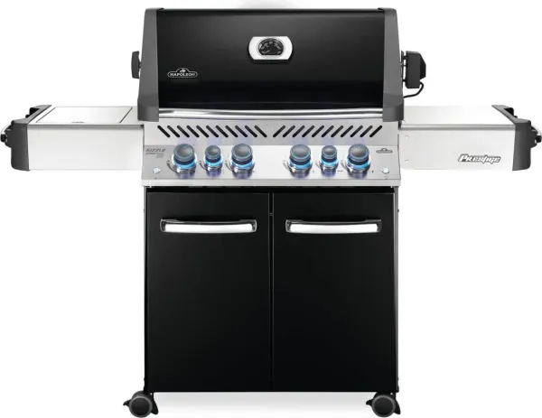 The Prestige P500RSIB Barbecue features an infrared rear burner and comes with a heavy duty rotisserie kit for perfect spit roasted meals