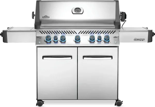 The Stainless Steel Prestige P665RSIB Natural Gas Grill features 5 main burners, 2 infrared burners, 92,000 total BTU, and 1140 square inches of total grilling area