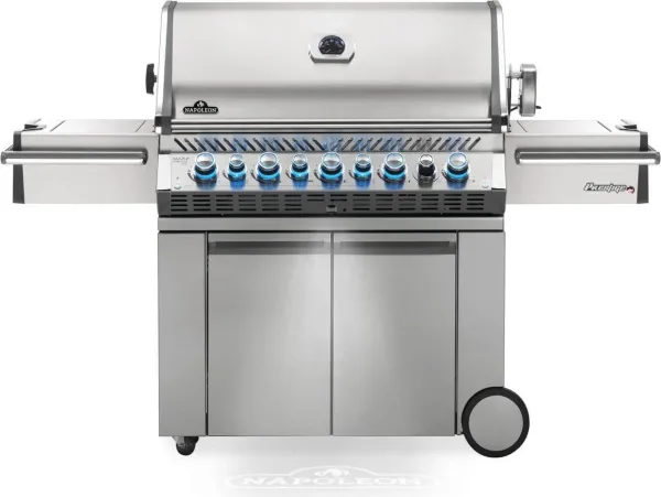 With features you don't see on the most grills, the Napoleon Prestige PRO 665 Propane Gas Grill with Infrared Rear and Side Burners has everything needed for professional grade backyard grilling. Superior heat retention provides oven-like performance and first-rate searing; you'll know it's a Napoleon with those iconic WAVE cooking grids for those distinctive sear marks and proximity lighting. Use the integrated smoker tray and dedicated burner to add smoke to all of your favorite grilled dishes. On the outside, a shining stainless steel body provides durability against the elements while chrome details add luxury. Not just durable on the outside; under the lid is the same quality stainless steel used for the cooking grids, tube burners and dual-level sear plates. The LED Spectrum NIGHT LIGHT Control Knobs have near limitless color options making night-time entertaining a breeze, and they also glow red when the gas is left on as a safety feature. Enjoy evenly cooked restaurant style meals with the rear infrared burner and rotisserie.