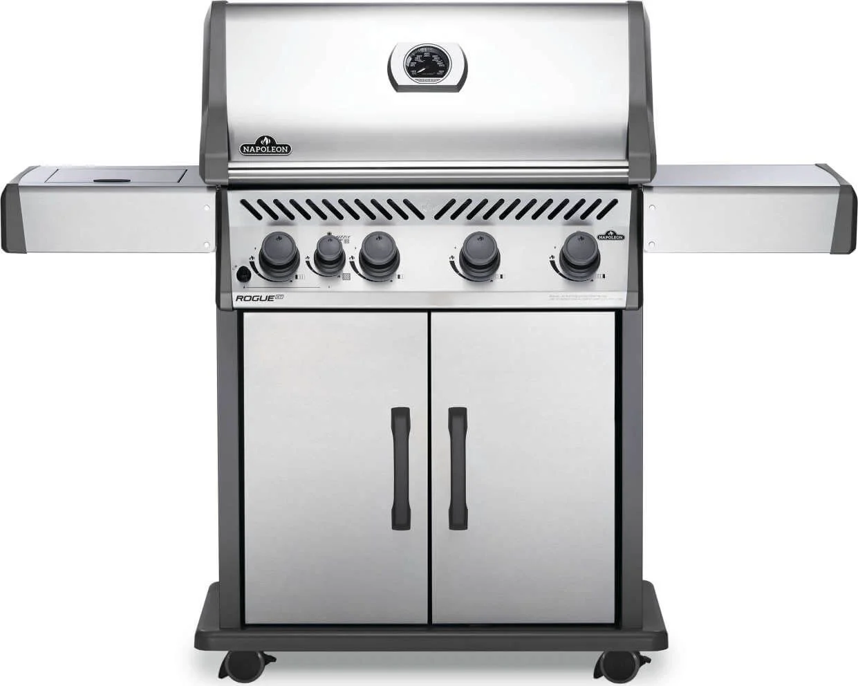 The Napoleon Rogue 525 Natural Gas Grill with Infrared Side Burner in Stainless Steel is a large and durable, easy to maintain gas grill. Featuring four main burners, stainless steel sear plates, stainless steel grids and a high top lid, this grill has everything you need for gourmet meals. Sear restaurant-style steaks on the integrated sizzle zone side burner while generous side shelves provide plenty of prep space.