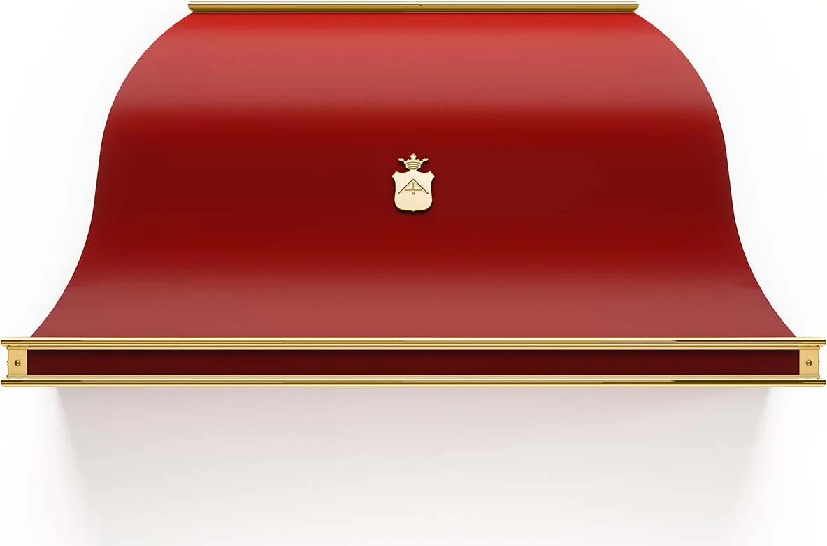 Officine Gullo extraction hoods are constructed entirely in high-thickness powder-coated steel, while the finishes are in brass. The high-thickness burnished copper version is exclusive.