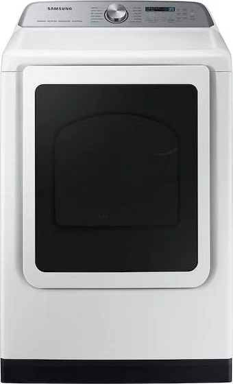 Samsung's 7.4 cu. ft. smart front load gas dryer in white has Steam Sanitize+ to sanitize clothing and reduce wrinkles and odors.