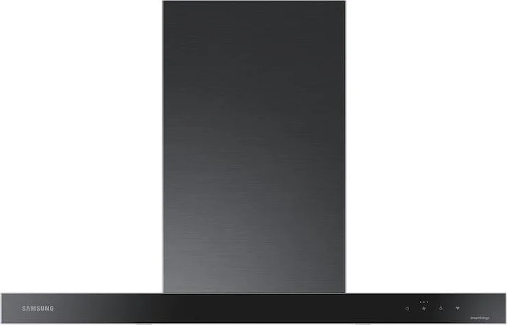 Our stunning 36" wall mount range hood in stainless steel with Clean Deep Charcoal panel delivers powerful ventilation, with minimal noise.