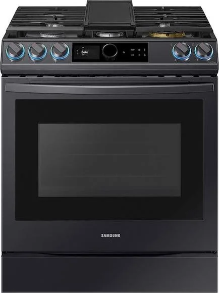 Samsung 30" Slide-In Gas Smart Range, 6.0 cu. ft. Capacity in Black Stainless Steel