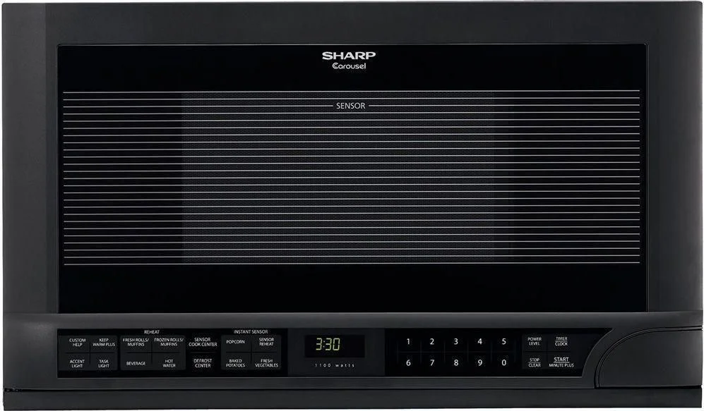 The R1210TY microwave oven model features 1.5 cu. ft. of cooking space with a stylish glossy-black finish for a modern kitchen look. Also available in white and stainless steel . Browse our full range of Sharp over-the-counter microwave ovens to find the right model for your home.
