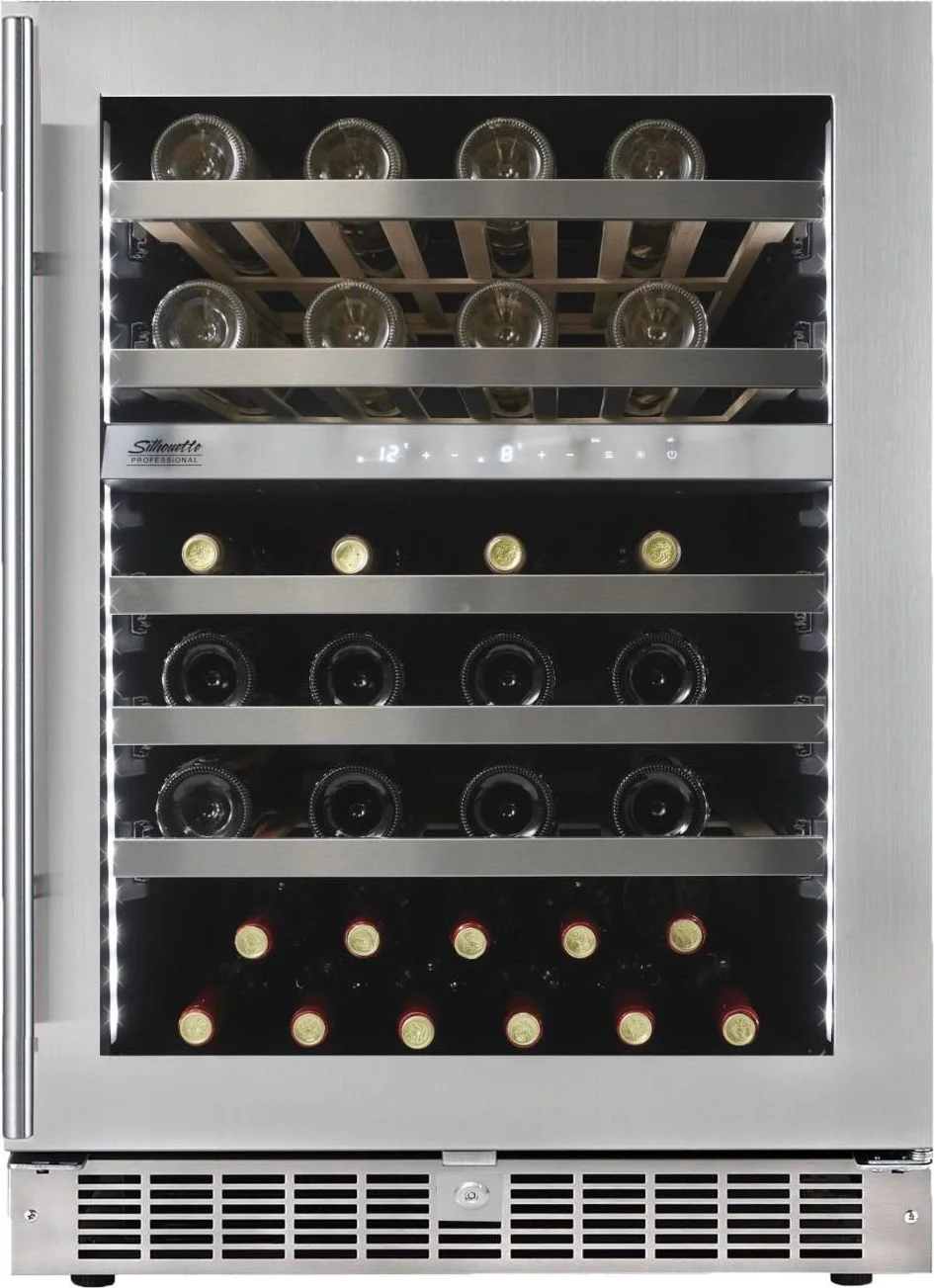 Built-in under-counter design stores up to 51 bottles of wine in two separately controlled temperature zones