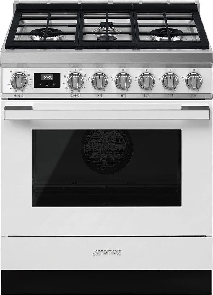 Smeg 30" Freestanding Dual Fuel Range, 3.7 cu. ft. Capacity in White