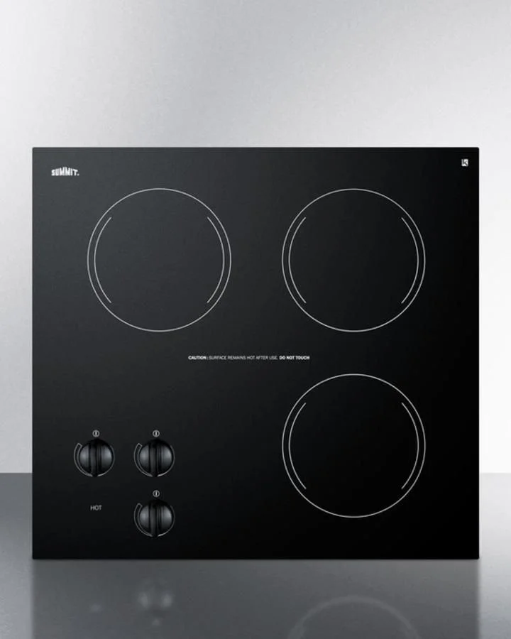3 1200W burners, each with 6" diameter, manufactured for SUMMIT by E.G.O. of Germany, considered by many to be the finest in the world