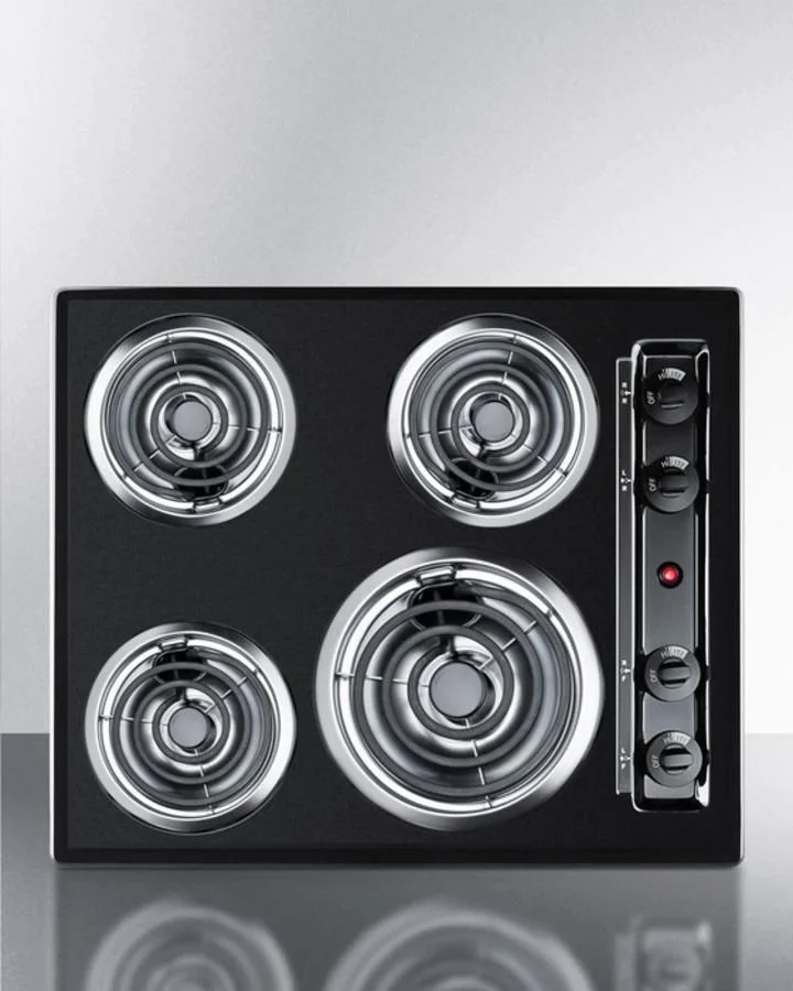 Each coil element includes a removable chrome pan to catch spills for easier cleanup