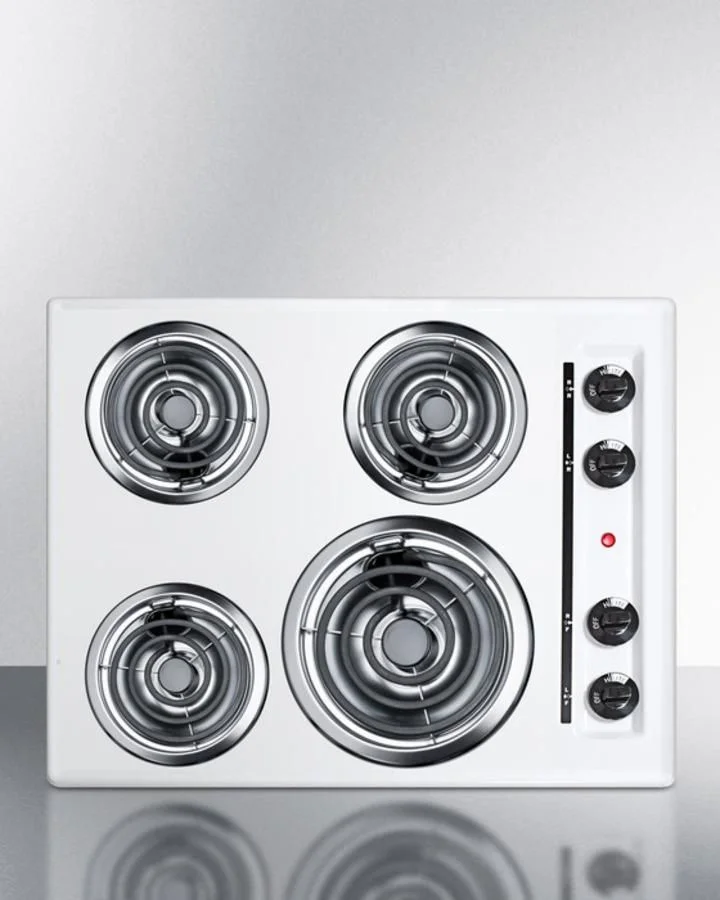 Each coil element includes a removable chrome pan to catch spills for easier cleanup