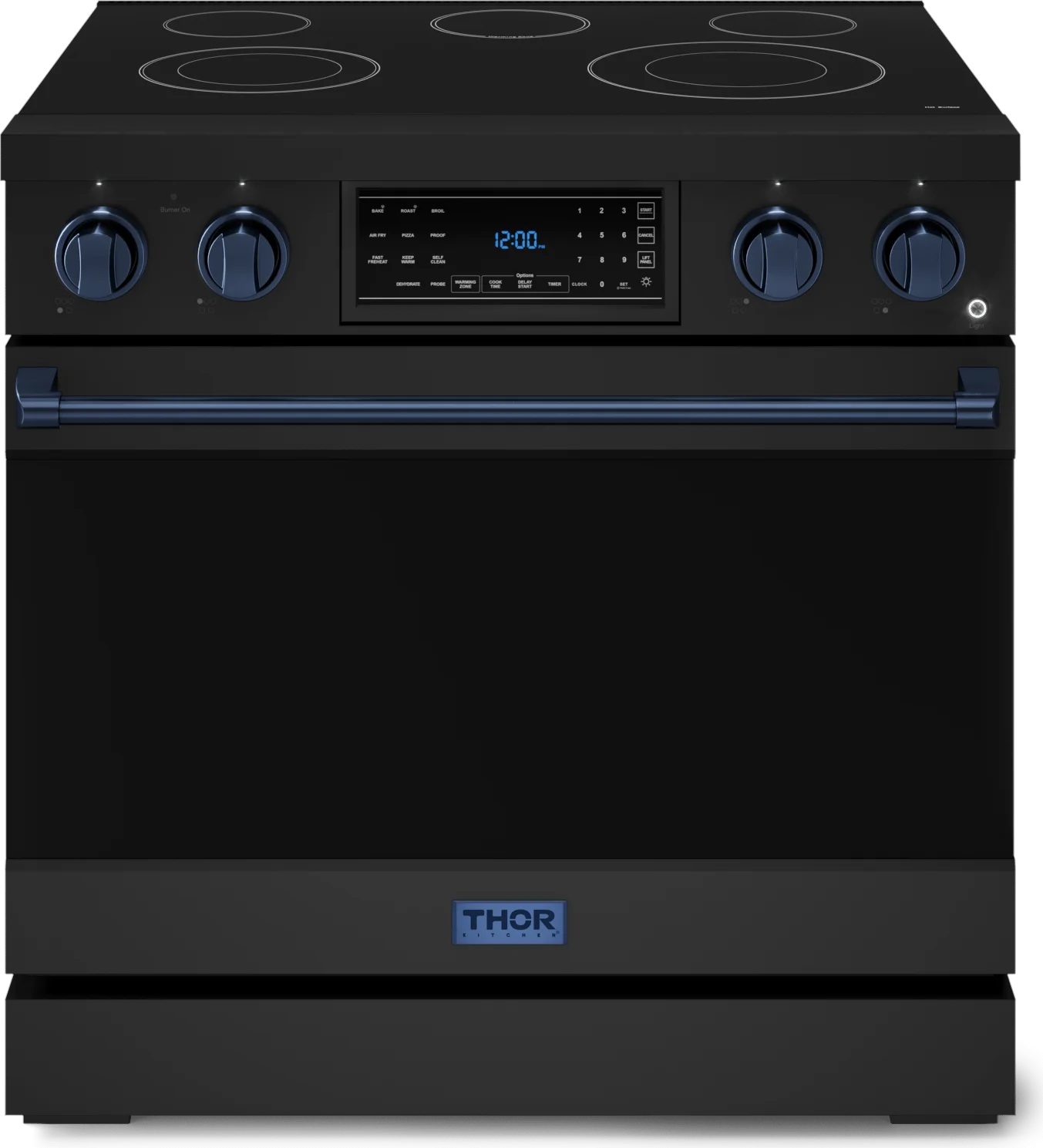 Designed for chefs who demand precision and power. With high-output burners, even heat distribution, and intuitive controls, this 36 Inch Professional Electric Range in Black/Navy Blue elevates your cooking experience. Built for durability and performance, it brings restaurant-grade quality to your home kitchen, making every meal exceptional.