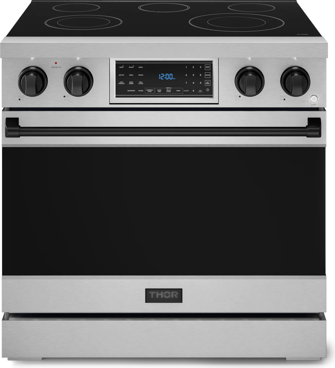 Designed for chefs who demand precision and power. With high-output burners, even heat distribution, and intuitive controls, this 36 Inch Professional Electric Range in Stainless Steel/Black elevates your cooking experience. Built for durability and performance, it brings restaurant-grade quality to your home kitchen, making every meal exceptional.