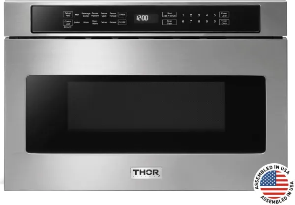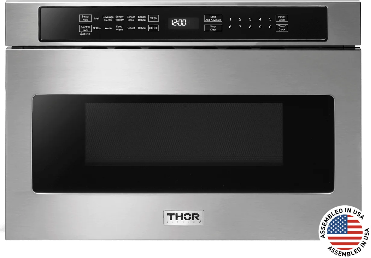 Calling all "microwave chefs," the THOR Kitchen 24-inch Microwave Drawer provides the tools you need to master your next meal. Offering all of the luxury features you'd expect from a premium appliance, the 24-inch Microwave Drawer features 10 power levels for precision heating and 12 unique easy-to-use food prep functions including popcorn, beverage center, melting chocolate and defrost. The 24-inch Microwave Drawer design is ideal for open kitchen designs and islands, freeing up counterspace for ingredients and food prep. #cooklikeagod