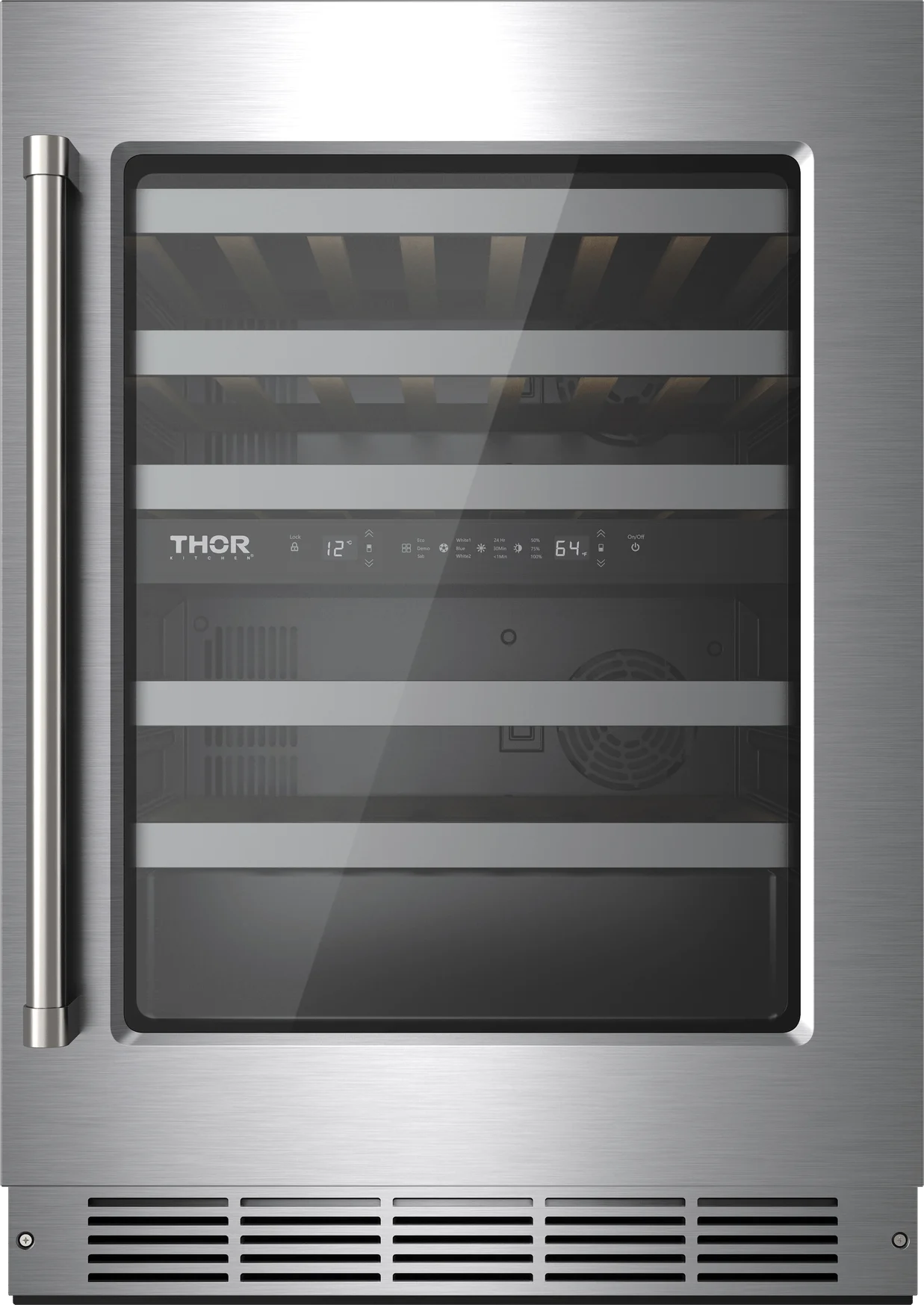 THOR Kitchen offers the power and performance of a premium professional appliance at a practical price. Experience premium wine storage with the TWC24UD 24-Inch Dual Zone Wine Cooler, designed for both casual collectors and serious connoisseurs. With dual-zone temperature control and space for up to 46 standard bottles, this sleek undercounter cooler offers precise preservation for red, white, and sparkling wines - all in one beautifully lit display.