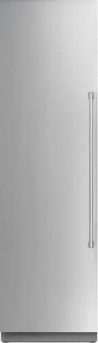 THOR Kitchen offers the power and performance of a premium professional appliance at a practical price. Thor's XRF24CRF Built-in Refrigerator Column delivers advanced performance and sleek design for a superior kitchen experience. Featuring Total No Frost technology, it eliminates ice and moisture build-up to keep your food fresh. The automatic ice maker produces up to 4 lbs. of ice per day, while fast freezing ensures your ingredients maintain their optimal taste and quality. Bright interior LED lighting provides clear visibility, and soft-close drawers add a touch of luxury. Operating at an ultra-quiet 43 dB(A), it ensures a peaceful kitchen environment. With a wide temperature range from +5(degree)F (-15(degree)C) to -11(degree)F (-24(degree)C) and versatile modes such as Sabbath, Holiday, and ECO."