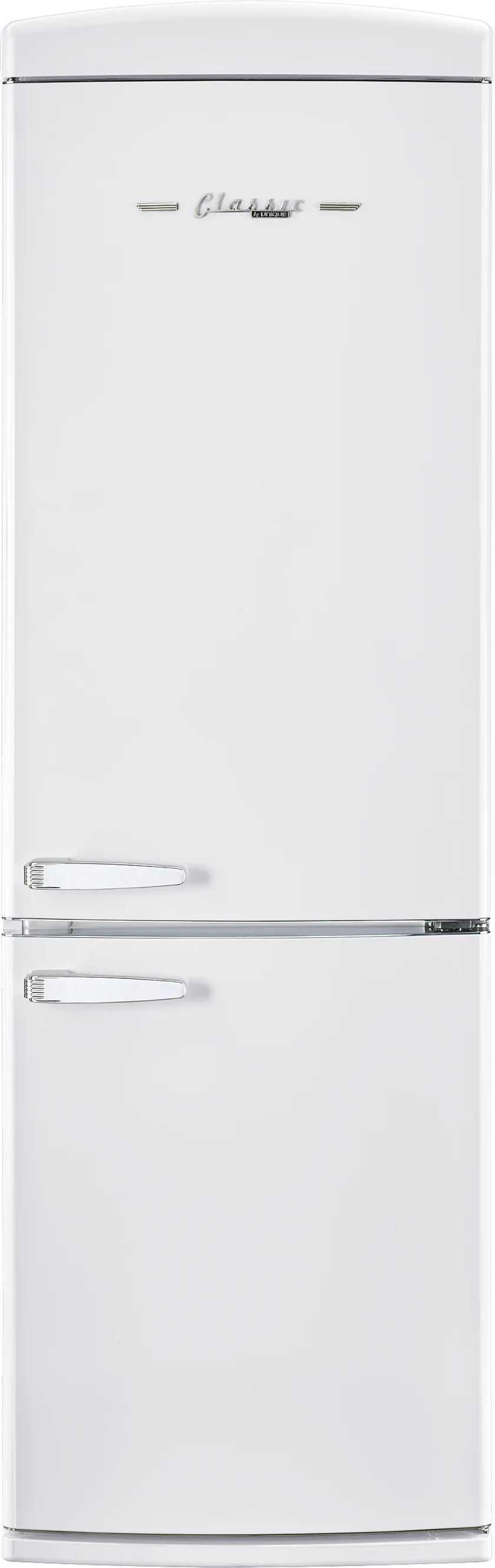 The 12 cu/ft Classic Retro by Unique bottom mount refrigerator transports you back to the 50s with its iconic retro design and chrome finished accents. This refrigerator is ENERGY STAR Certified for energy efficiency all year round, designed for optimal energy savings and easy, dependable use. Now with our frostfree design, that means easy cleaning without dealing with frost buildup. With ample storage capacity, it s suitable for the whole family.