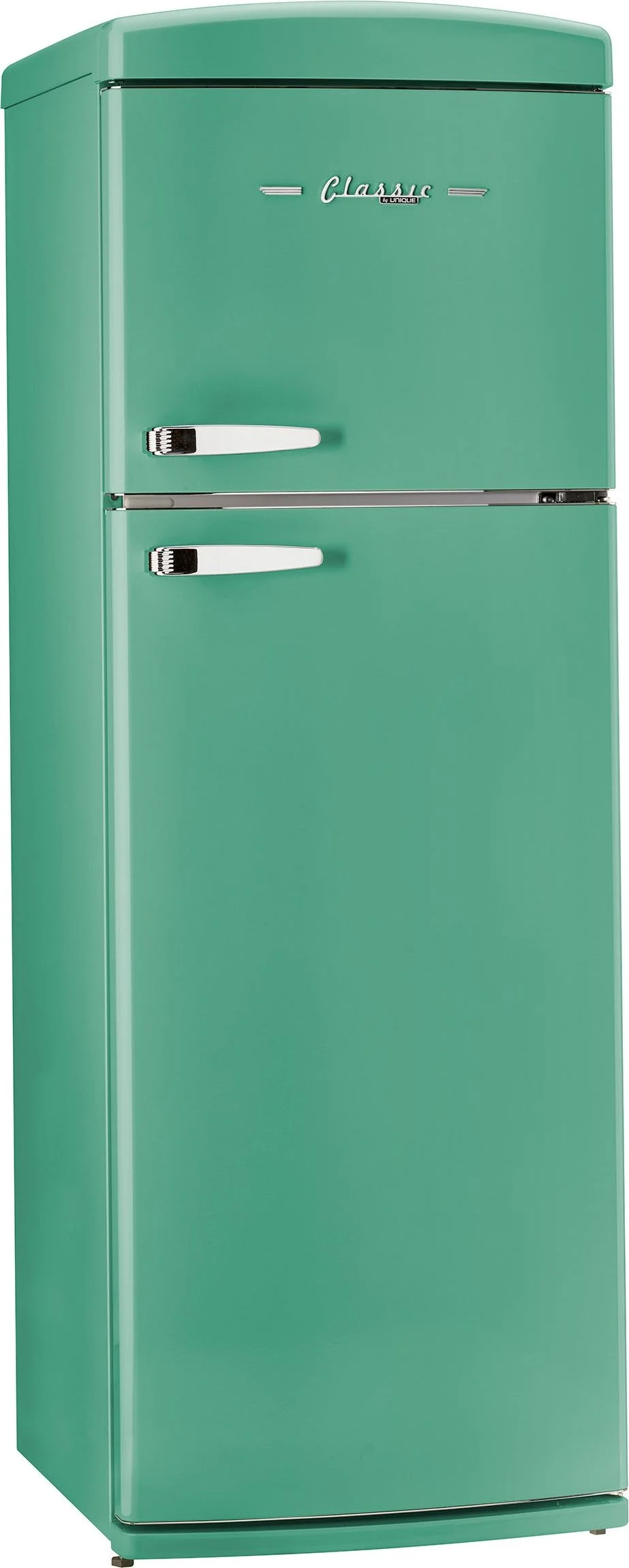 Timeless style meets efficiency in our 11 cu. ft. retro top-mount, Energy Star, frost-free refrigerator. Featuring chrome accents, LED display, adjustable glass shelves, frost-free cooling and Super Freeze Mode, it blends style with performance. Stay organized with a wine rack, ice tray, and humidity control crisper while the digital control panel and door alarm ensure convenience and peace of mind.