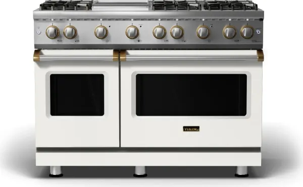 Viking 48"W. Sealed Burner Gas Range (Burner: 6g, Finish: Pure White, Trim: Brushed Brass, Fuel: Natural Gas) in Pure White